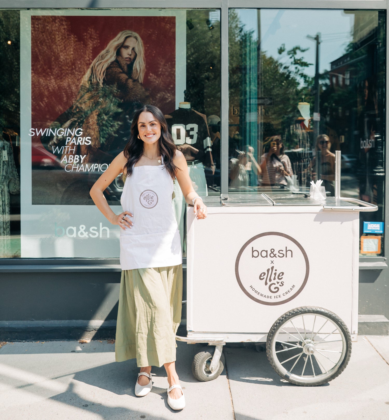 We celebrated ba&sh Paris fall collection in September with custom carts at the West Village location, Soho, and the Upper East Side. A limited edition parisian inspired flavor - vanille framboise folie - a silky french vanilla with raspberry & chocolate. We ran out so quickly and had the best time handing out ice cream all over the city!