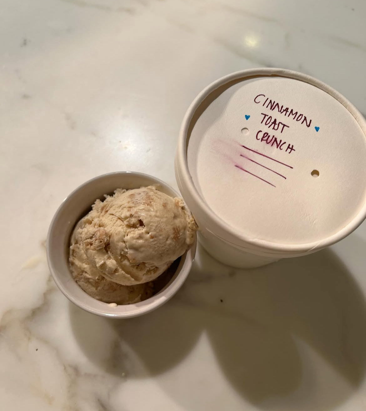 Basically, if you could turn the leftover milk from a bowl of Cinnamon Toast Crunch into ice cream, this would be it. Sweet, cinnamony, with plenty of crunchy CTC pieces for texture. Han requested this one because it was our favorite childhood cereal, and wow, it delivers.