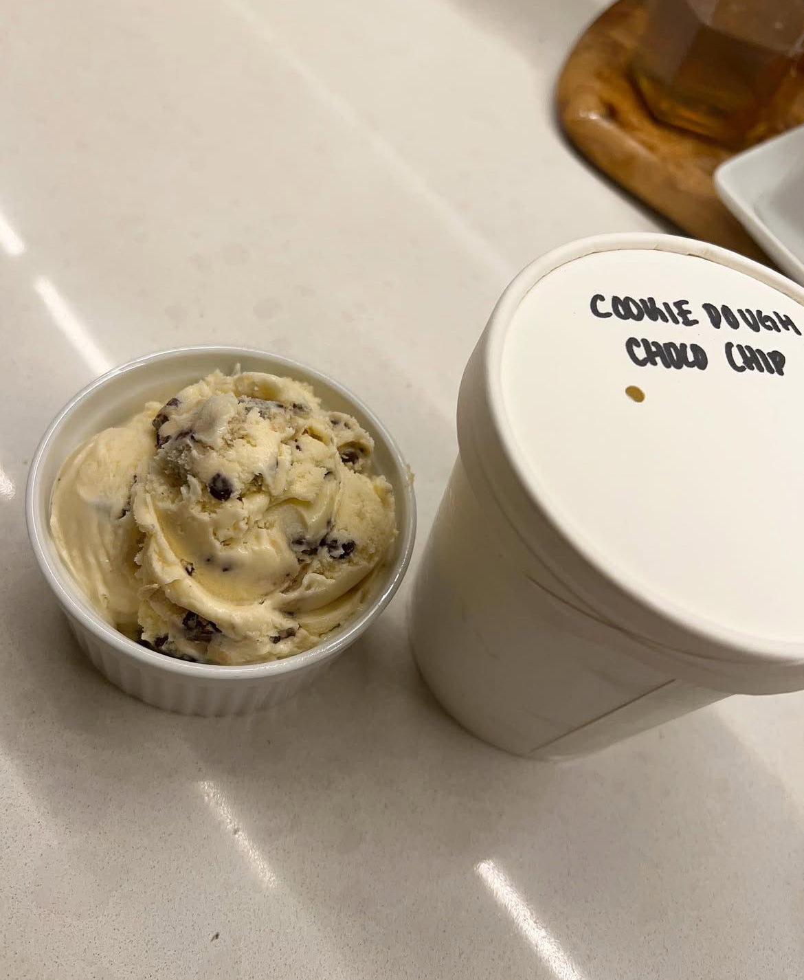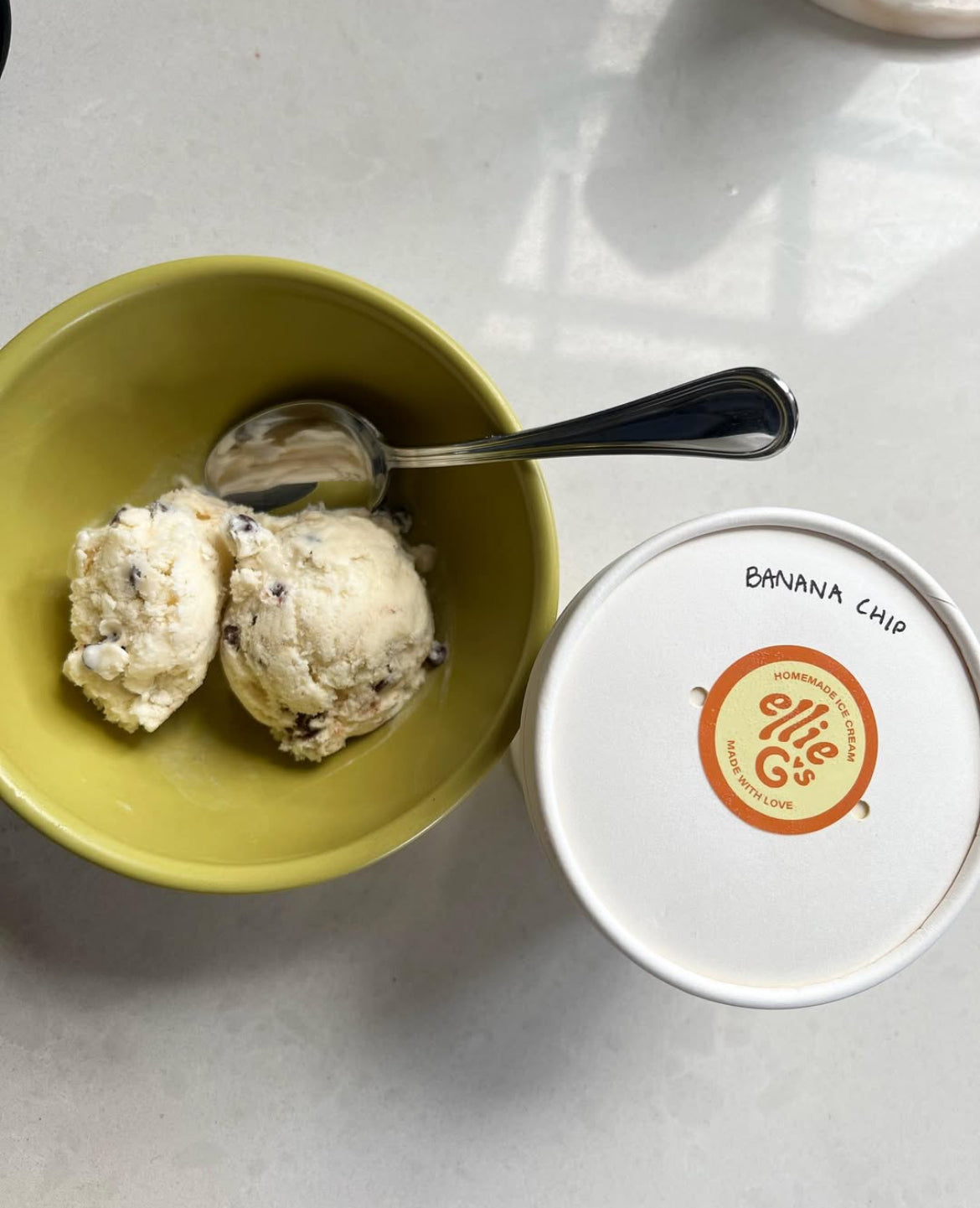 Honestly, I wasn’t expecting to love this, but it’s SO good. A banana infused base with a touch of lemon for brightness, plus bits of chocolate throughout. It’s a little icier than my usual ice creams because of the banana, but trust me, it works.