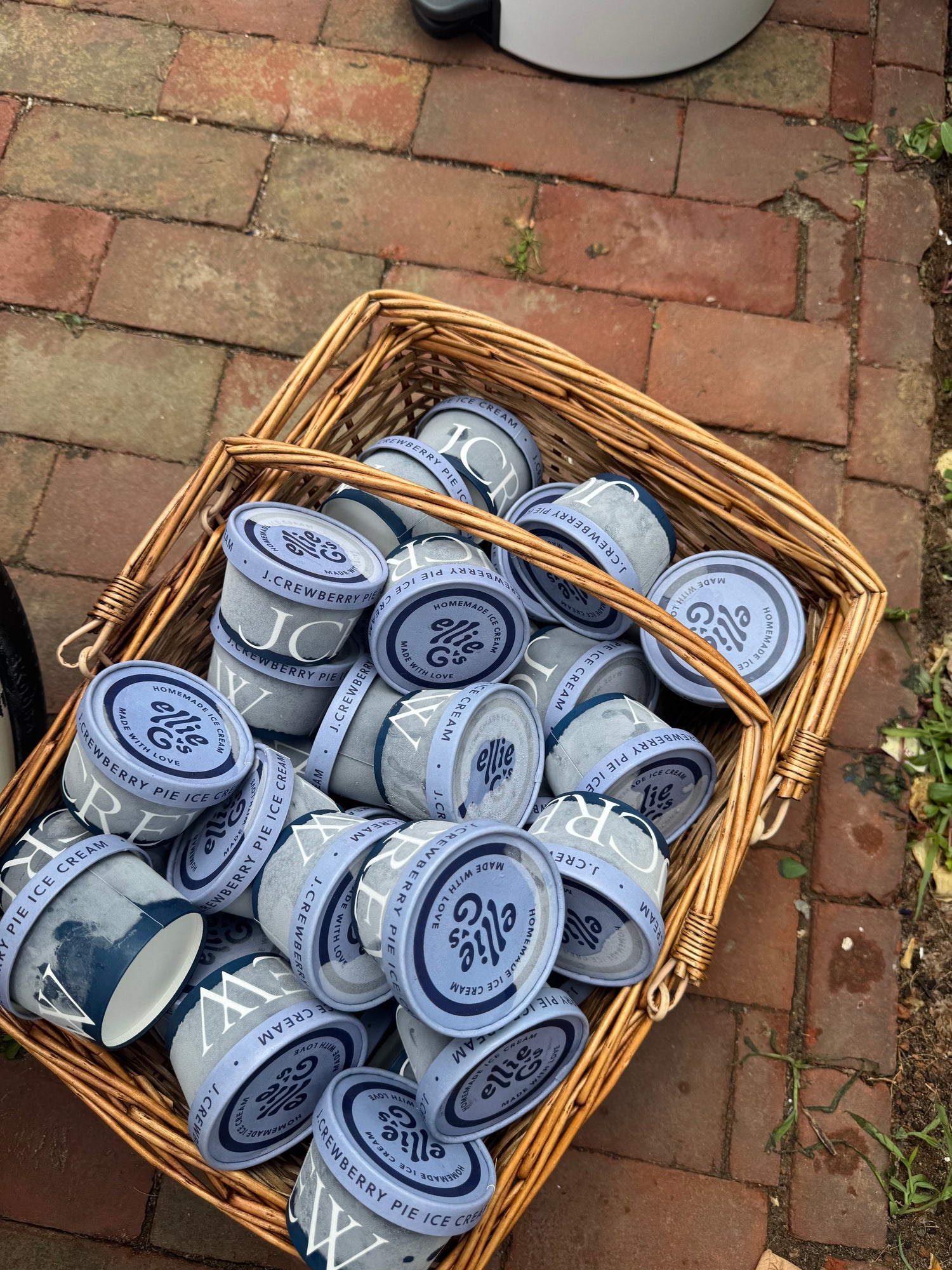 Last weekend we celebrated J.crews grand store opening in Southampton with 850 mini pints of Ellie G’s Ice cream! We created a limited edition summer flavor - J.Crewberry - a blueberry base with fresh compote made from blueberries and lemon juice and zest, and a generous amount of graham crackle crumble mix ins. The perfect nostalgic bites of blueberry pie ice cream on a hot summer day.