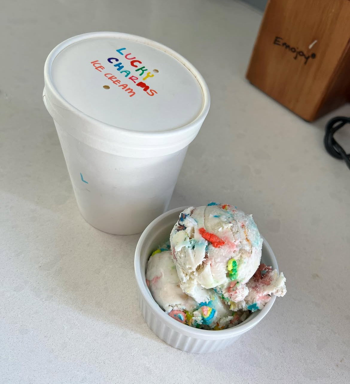 A sugary, nostalgic dream. This one is straight-up childhood in a pint—sweet vanilla cereal milk base with Lucky Charms mixed in. It’s really sweet, but in the best way possible. Inspired by Salt & Straw’s cereal month, and it turned out even better than I expected.