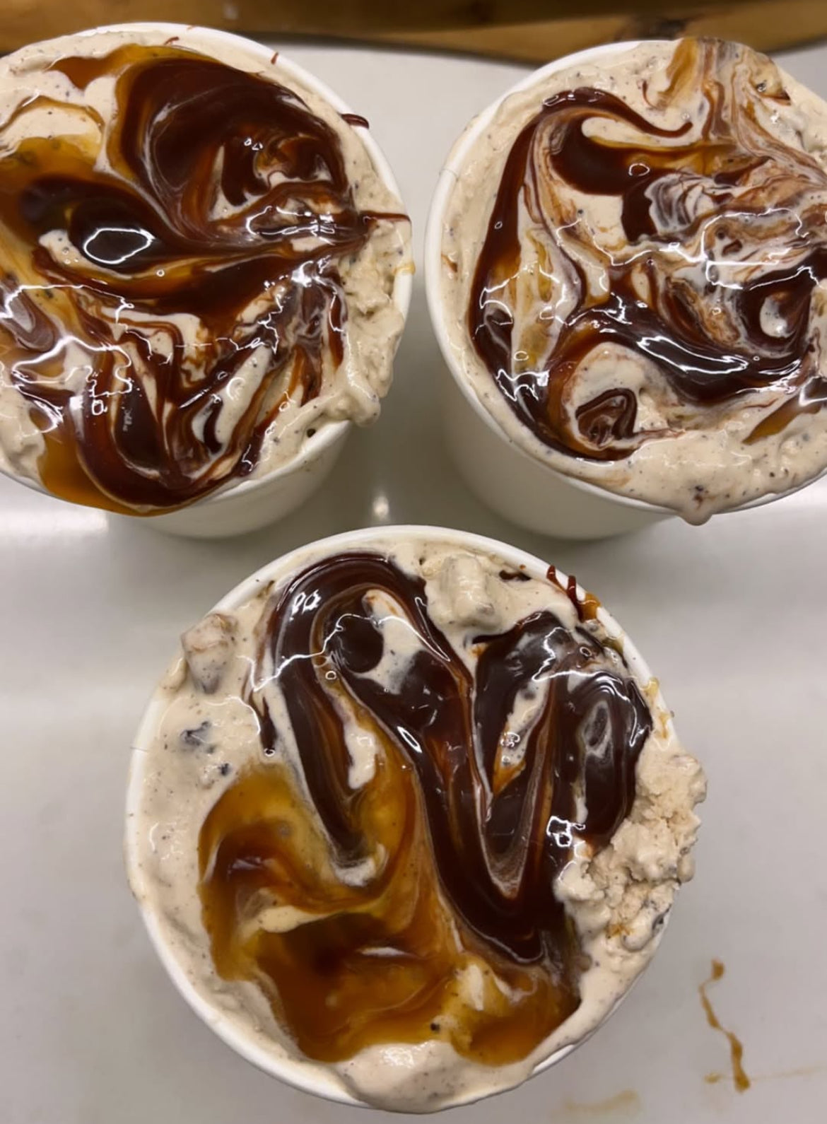 This one got snatched up FAST! A super smooth vanilla base loaded with big peanut butter chunks and crumbled Tagalongs cookies. Went with vanilla instead of chocolate to let the PB shine, and sweetened the peanut butter with maple syrup for the perfect balance. Only two pints left—move fast!