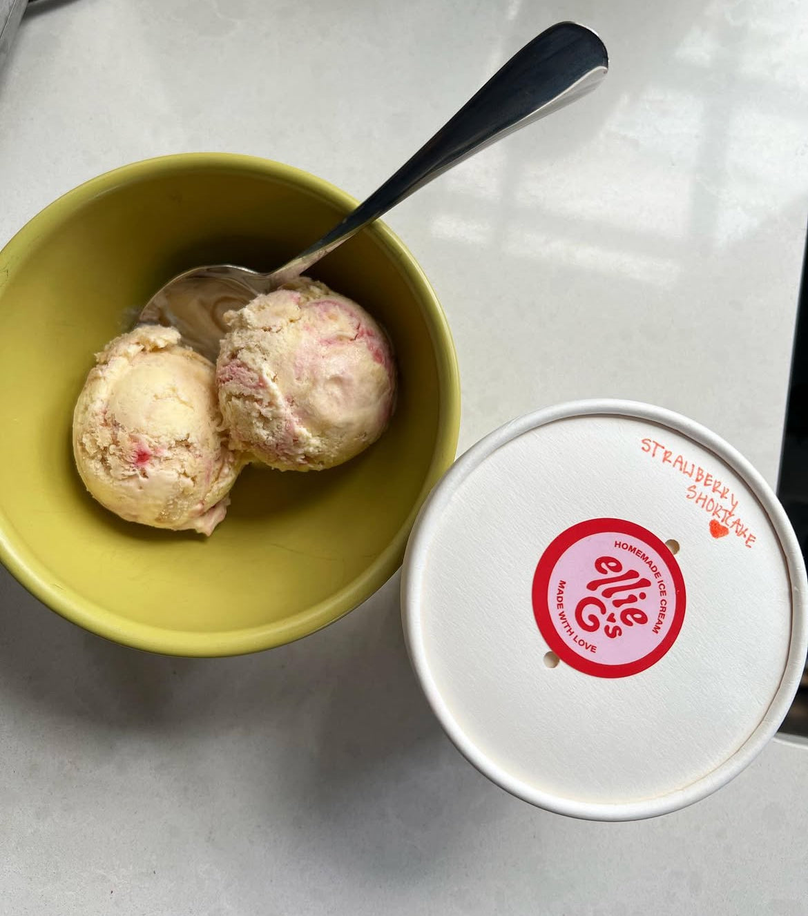 I am losing my mind over this one. A sweet cream base with Girl Scout Trefoils acting as the shortcake, layered with swirls of fresh strawberry sauce. Classic, nostalgic, and absolutely perfect.