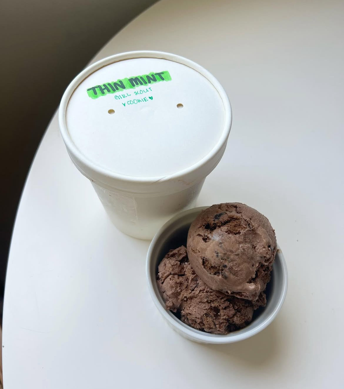 Girl Scout cookie season is in full swing, and this flavor is proof. Thin Mint cookies mixed into a cool, creamy mint base; simple but flawless.