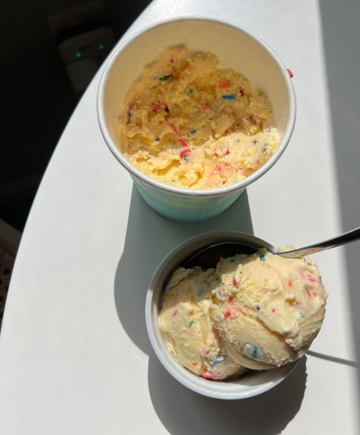 This one is straight-up nostalgia in a pint. rich, buttery cake batter ice cream that legit tastes like licking the spoon when you’re baking, mixed with chunks of golden birthday cake and swirls of vanilla frosting. I went hard on making sure this tastes like actual cake and not just vanilla with sprinkles. SO soft, so creamy, so fun. perfect for celebrating something…or just because.